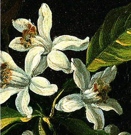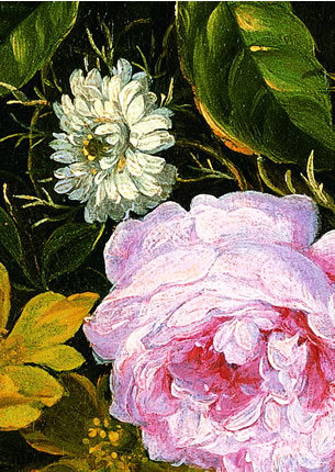 Las Rosas de York y de Lancaster son llamadas así por combinar el blanco, color favorito de la casa de York, con el rojo de los Lancaster; de color azul los jacintos. Monnoyer solía mezclar las flores de verano (rosas) con las de primavera (jacintos) y todas conservaban su frescura estacional.