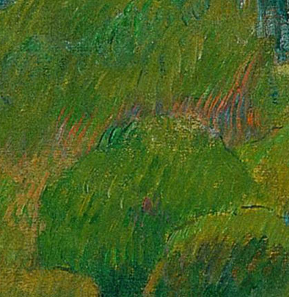La pincelada es apretada y oblicua, muy parecida a la de Cézanne, estructurando las formas y haciendo vibrar, con su textura, a la superficie pictórica.