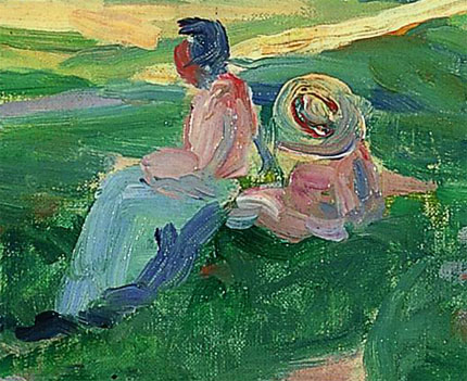 Los personajes descansan bajo la sombra de una arboleda. El artista logra trasmitirnos sensación de frescor.