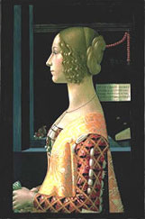 Cristo y la Samaritana, 1310-1311 Temple y oro sobre tabla, 43,5 x 46 cm. Sala 1 Estamos a principios del siglo XV y los artistas están estudiando cómo representar las cosas lo más parecidas a la realidad. En este cuadro de tema religioso puedes observar cómo la escala de las cosas no se corresponde con la realidad: las personas son mucho más grandes que los edificios que representan la ciudad. Si te fijas en las ventanas de la torre comprobarás que es imposible que uno de estos personajes se pueda asomar por ellas. Domenico Ghirlandaio Retrato de Giovanna Tornabuoni, 1488 Técnica mixta sobre tabla, 77 x 49 cm. Sala 5 El retrato es un género pictórico que ha ido cambiando a lo largo de la historia. Éste es un ejemplo de los retratos que se hacían durante el Renacimiento en los que se resaltaba la belleza del personaje o su inteligencia. Para que nosotros entendamos cómo era esta joven el pintor ha introducido objetos que nos ayudan: las joyas, el misal, el rico vestido, etc. Vittore Carpaccio Joven caballero en un paisaje, 1510 Óleo sobre lienzo, 218 x 151,5 cm. Sala 7 En este retrato de un joven caballero renacentista podemos ver cuáles deben ser sus características más importantes: honor, fidelidad, pureza y algunas más que puedes descubrir investigando el significado de los animales y plantas que rodean a este personaje. El artista ha creado un retrato idealizado del caballero mezclando elementos de la realidad y elementos imaginarios. |